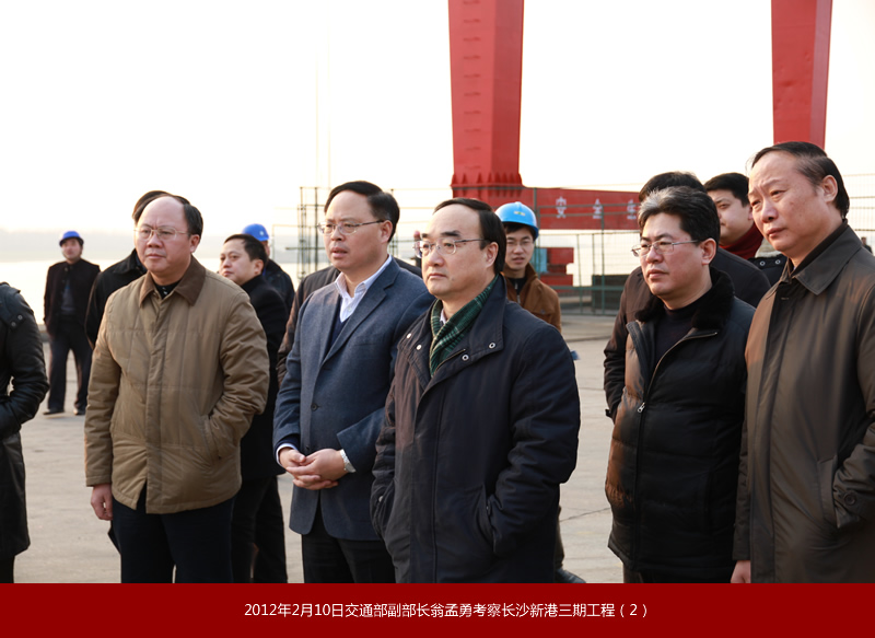 2012年2月10日,交通運(yùn)輸部黨組副書(shū)記、副部長(zhǎng)翁孟勇來(lái)長(zhǎng)沙新港考察時(shí)強(qiáng)調(diào):長(zhǎng)沙新港變化一次比一次大,當(dāng)前要借助湖南加大水運(yùn)發(fā)展力度的有利契機(jī),加快樞紐、港口和湘江2000噸級(jí)航道提升建設(shè),更好地服務(wù)經(jīng)濟(jì)社會(huì)和航運(yùn)的持續(xù)發(fā)展。